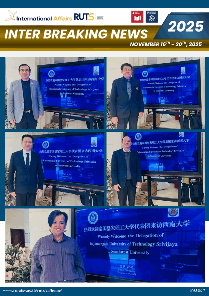 On November 19, the delegation from Rajamangala University of Technology Srivijaya (RUTS), led by Prof. Dr. Suwat Tanyaros, continued its academic visit to China with an official stop at Southwest University (SWU). The visit aimed to build stronger academic relations and explore new collaborative avenues between the two universities.